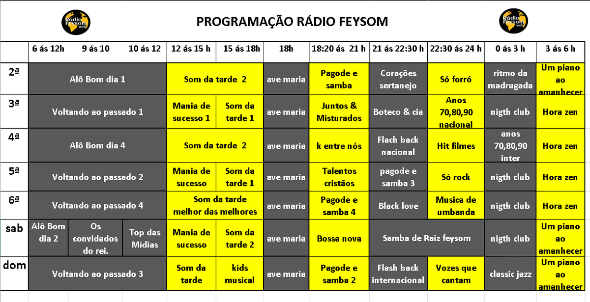 Na Rádio Feysom, tocamos uma variedade de gêneros musicais, desde pop e rock até MPB e sertanejo. Nossa missão é proporcionar uma experiência sonora diversificada que atenda a todos os públicos.